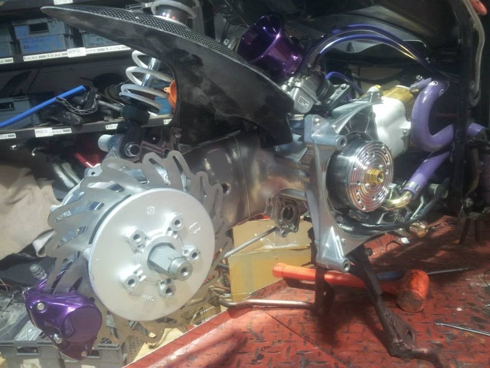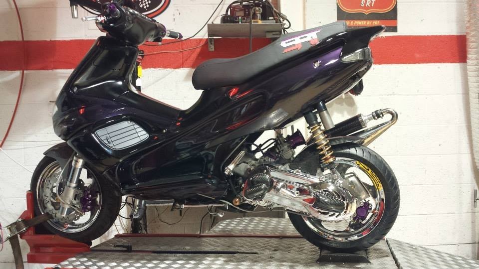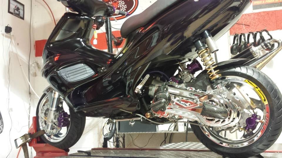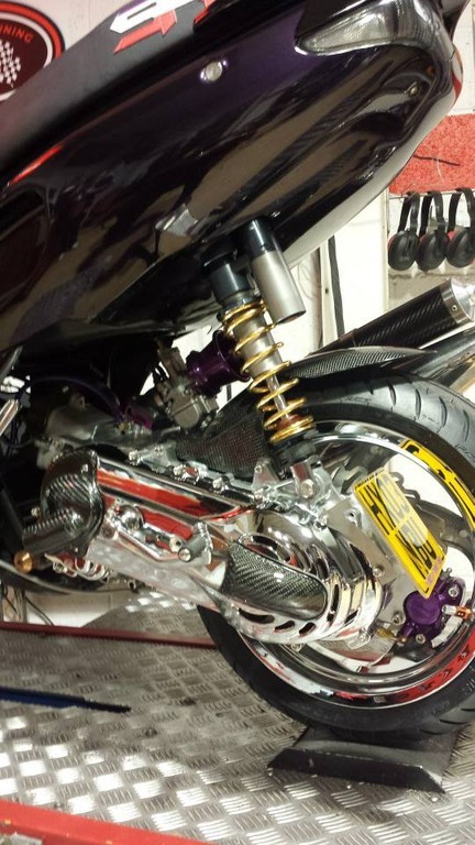 No expense was spared on this scooter....every single part has been optimised. The engine is a full SRT183 spec, but with a lot of very special parts added, including Malossi F36 forks, RS24/10